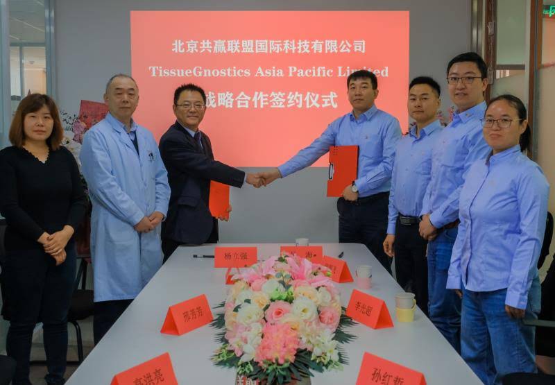 ? ? ? ?2021年3月5日,北京共贏聯(lián)盟國際科技有限公司與TissueGnostics公司(以下簡稱TG公司)在北京共贏聯(lián)盟中心實驗室簽訂科研合作戰(zhàn)略協(xié)議,出席此次簽約儀式的有北京共贏聯(lián)盟國際科技有限公司總經(jīng)理楊立強,中心實驗室技術(shù)總監(jiān)王東升,TG公司總經(jīng)理吳海。