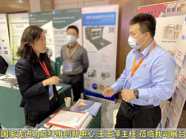 我司(北京共贏聯(lián)盟國(guó)際科技有限公司)展臺(tái)吸引了很多行業(yè)同仁的光顧。國(guó)家先進(jìn)功能纖維創(chuàng)新中心王玉萍主任,天津波音王浩博士等參會(huì)嘉賓來(lái)到我司展臺(tái)了解我們公司的新產(chǎn)品與技術(shù),對(duì)我公司在展會(huì)上展出的EXAKT三輥研磨機(jī)分散技術(shù),紐邁低場(chǎng)核磁技術(shù),EXAKT先進(jìn)切割技術(shù)非常感興趣,與我司工作人員做了熱切交流。