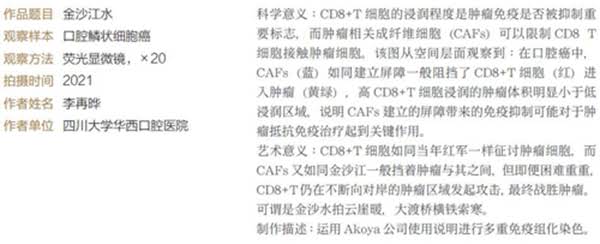 這些作品幾乎均為創(chuàng)作者在日??蒲泄ぷ髦幸圆煌募夹g(shù)手段捕捉到的微觀生命瞬間,科學(xué)的“透鏡”似乎為我們展現(xiàn)出一幅幅藝術(shù)的“魔幻”,一邊是細胞、分子層面的微觀抵達,另一邊好似一塊既陌生又熟悉的“優(yōu)詩美地”。這里,本是科學(xué)嚴謹?shù)念I(lǐng)地,因為其關(guān)乎生靈,便開啟人們自由逸放的審美思緒。在此,我們驚嘆中國古代哲學(xué)體系中“天人合一、道法自然”的天道規(guī)律。原來早于現(xiàn)代科學(xué),這種“盡精微而致廣大”的宇宙觀便已根植于我們生存的大地。感謝各位作者以他們現(xiàn)代技術(shù)的視野,為我們定格生命律動的瞬間,張揚蓬勃的藝術(shù)活力。換一個視角,生命的風景便呈現(xiàn)“天地人”的和諧和統(tǒng)一,換一種思路,生命的哲學(xué)便更能詮釋苦難與幸福的非凡境遇。
