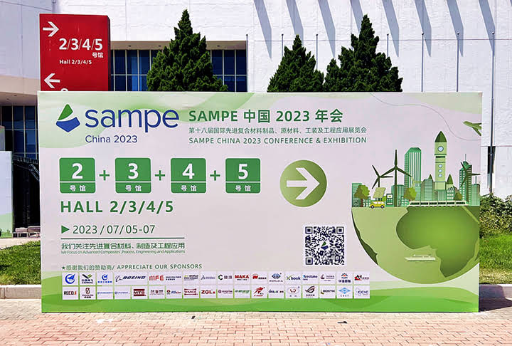 2023年7月5日,SAMPE中國2023年會暨第十八屆國際先進復合材料制品、原材料、工裝及工程應用展覽會在北京中國國際展覽中心(朝陽館/原靜安莊館)隆重開幕。