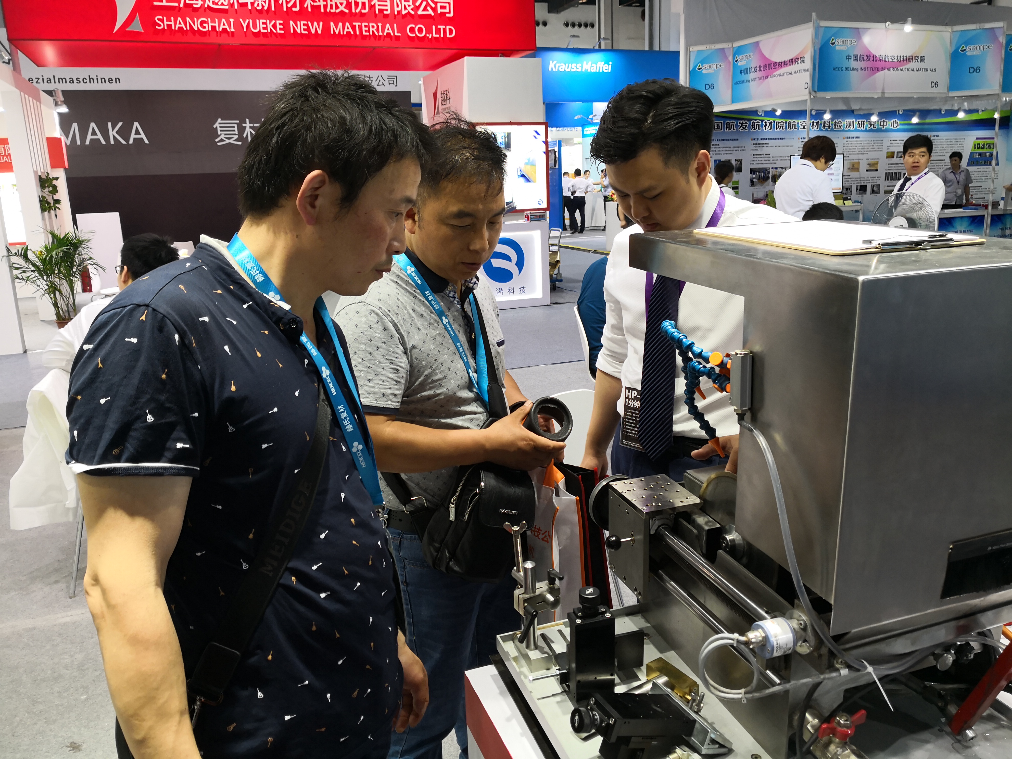 ? ? ? 2018年5月16日第十三屆SAMPE先進復合材料制品、原材料、工裝及工程應用展會在上海光大國際會展中心隆重召開。我公司董事長和總經理親率各部門經理和工程技術人員,并攜帶德國EXAKT公司、APPARATEBAU WESER KG公司和美國EXTEC公司用于先進復合材料試樣加工的切磨技術與相關設備參展。