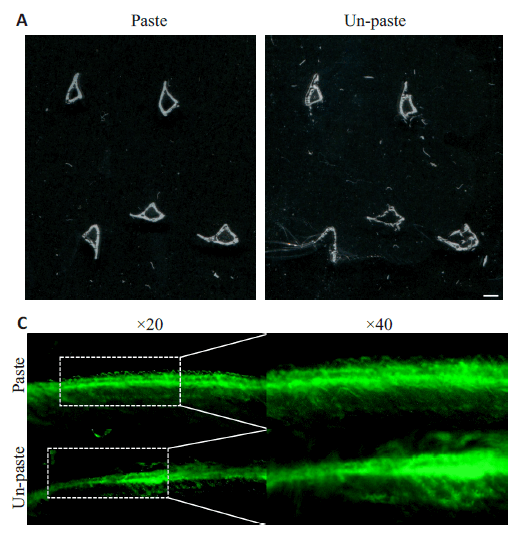 2.3 使用包埋液涂抹切面可以降低切片時(shí)脫片率而不影響鈣黃綠素?zé)晒夥治?/strong>