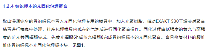 樹(shù)脂包埋法制備病理組織切片與常規(guī)" 石蠟包埋組織切片" 相比,制片步驟更為復(fù)雜繁瑣,制片周期更長(zhǎng),組織標(biāo)本需要?dú)v經(jīng)組織切割暴露切面、梯度乙醇脫水、不同體積比的Technovit 7200VLC 樹(shù)脂/乙醇混合液浸潤(rùn)、光聚合包埋、制備平行粘片,切片、磨片,才可制備出一張不脫鈣的骨組織病理切片。